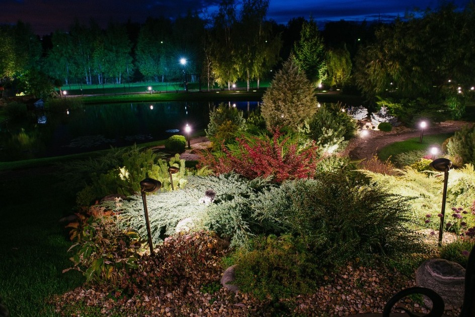 Какое освещение лучше организовать для газона и альпийской горки