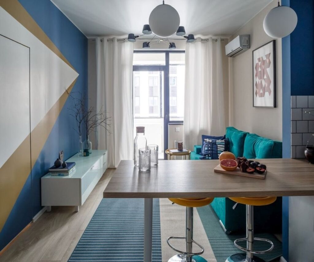 — Гармония форм и материалов: Используйте один и тот же материал и цвет на мебели и отделке для создания единого образа.